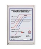 Central de alarme para 8 sondas; Sinalização óptica de alarmes no painel; Botão para rearme manual; Utiliza bat. 12Vdc 3 Amp.; Dimensões: 335x260x85mm; Certificado AENOR e ATEX 949 CE.